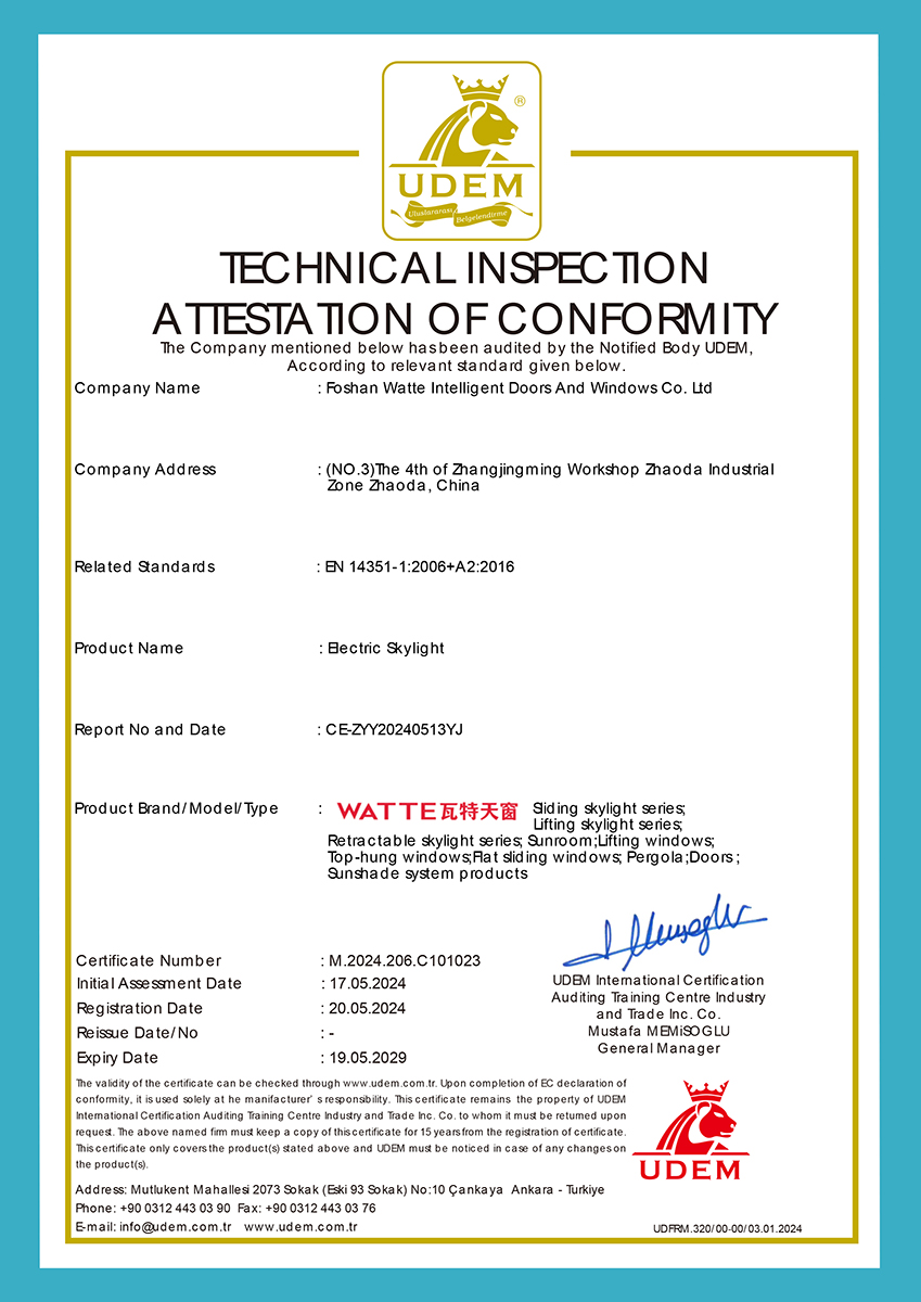 WATTE瓦特始创于2012年北京,2019年总部迁至广东佛山。13年专注高端建筑洞口解决方案,以智能天窗、升降窗、移动阳光房为核心,构建研发、设计、制造、服务全产业链。依托两大现代化生产基地与多项国家新型专利,品牌以硬核创新赋能产品升级。销售服务网络遍及全球,产品远销美、英、德等多个发达国家,让中国智造服务全球用户。